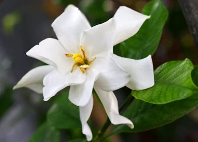 I woke up to find a single gardenia (Gardenia Jasminoides) flower blooming amidst the frangipani trees, its heady and rich romantic fragrance perfuming the warm morning air. The gardenia flower softly whispers, " I love you in secret."